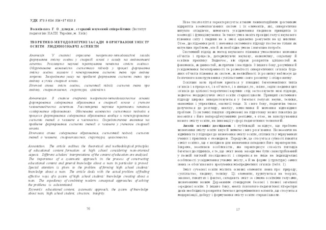 - Васьківська, Галина Олексіївна (orcid.org/0000-0002-8714-8512) (2015) Theoretical and methodological foundations of the formation of the content of education: aspects of knowledge of human Психолого-педагогічні основи гуманізації навчально-виховного процесу в школі та ВНЗ, 1 (13). pp. 16-23. ISSN ISBN 978-966-7359-77-5