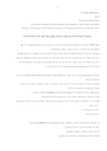 The report presents the fundamental principles for evaluating the educational achievements of pupils in primary classes in Hebrew as the second, identifying criteria for assessment in accordance with the goals and content of education.