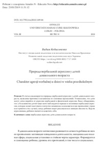 - Кобильченко, В.В. (orcid.org/0000-0002-7717-5090) (2018) Charakter agresji werbalnej u dzieci w wieku przedszkolnym Annales Universitatis Mariae Curie-Sklodowska, sectio N – Educatio Nova (3). pp. 49-64. ISSN 2451-0491
