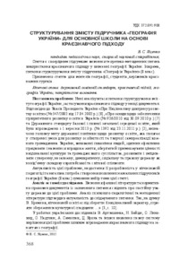This article is an original conclusion on studying the theoretical and methodological issues for the implementation of the regional approach to teaching Geography of Ukraine. In particularly, the issue of the structuralizing of the content of the textbook Geography of Ukraine (the 8 th grade) was studied. The article is for teachers of Geography, students, and chiefs of the regional geography project teams.