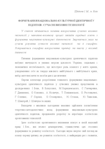 - Шкільна, Ірина Миколаївна (orcid.org/0000-0001-9456-8278) (2018) Formation of national-cultural identity in adolescents: modern educational technologies Всеукраїнська науково-практична конференція "Особистість у просторі виховних інновацій", м. Київ, 18-19 жовтня 2018 року. pp. 422-428. ISSN ISBN 978-966-2716-99-3