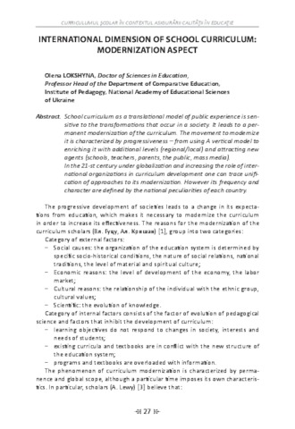 - Lokshyna, O.I. (orcid.org/0000-0001-5097-9171) (2018) International dimension of school curriculum: modernization aspect In: Curriculumul şcolar: provocări şi oportunităţi de dezvoltare. Materialele conferinței ştiințifice internaționale (7–8 decembrie 2018, Chişinău). Chişinău, 2018 . „Lyceum”, м. Кишинів, Молдова, pp. 27-29. ISBN 978-9975-48