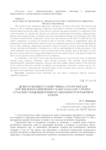 In the article, attention is paid to the changes in the relevant programs and standards, the relevance of the geography textbook for in-depth study for the 8th form, and highlights the priority functions and their impact on the structure of this textbook. A profile block in the direction of geography and economics in high school requires in-depth training of students on corresponding vector in the eighth and ninth forms. In addition to the time allocated and the corresponding training programs for in-depth study of geography in the 8th and 9th forms, the pedagogical community needs methodological and didactic support for the effective implementation of them, which firstly should be implemented in a geography textbook for in-depth study in general education establishments. In the modern period of modernization and reformational changes in school geographic education, curricula and textbooks of this type must be formed on the basis of the principle of integrity, that is to orientate on interdependent and interrelated geographic courses. First of all, courses in in-depth study of geography in the 8th and 9th forms should prepare pupils for the mastering of geographic-economic courses of profile level in high school: both in the content and methodological aspects. The modern development of the information environment, the amount of information, most of which has a geographic accent and can be used for educational purposes, functions such as: organizational, coordinating, procedural and motivational in the textbook for in-depth study of geography in the 8th form should to form a functional core, through the isolation of the appropriate toolkit.Then the informational function of the textbook, especially for in-depth study of geography, can be realized at the expense of the toolkit of the functional nucleus.On the other hand, it can not reduce the role of other functions of the textbook, especially the information one - it must be transformed, modified.Due to the growing number of educational content, it is not enough for the textbook of this type to be only a means of fixing a part of social experience - it must structure the material forming a general idea of the essence of individual units.Then the deep mastering of a particular block should be carried out at the expense of a qualitatively executed toolkit of the functional core.