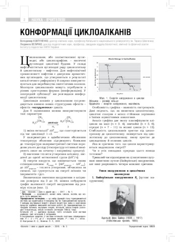 - Величко, Л. П. (orcid.org/0000-0002-1921-3669) and Ковтуненко, В.О. (2018) Conformation of cyclealkans Біологія і хімія в рідній школі, 3 (126). pp. 2-8.