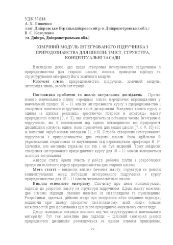 - Ляшенко, А. Х. (orcid.org/0000-0003-1331-3383) and Коваленко, Валерій Сергійович (2017) Chemical Module of the Integrated Textbook on Natural Science for the School: Content, Structure, Conceptual Basis Technologies of Integration of the Content of Education (7). pp. 72-76.