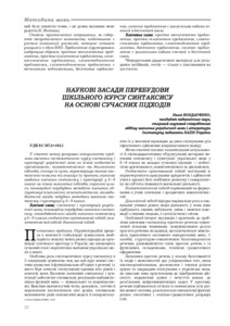 The article reveals the relevance of systematic study of syntax and punctuation course of Ukrainian-based personality oriented, competence and activity approaches; discovers their essence; describes the typical syntax errors and analyzes their causes; defines the task of teaching syntax and punctuation in grades 8-9 based on these approaches; outlines innovative ways of restructuring teaching methods; justifies psychological, psycholinguistic, language framework for designing methods of teaching syntax and punctuation in grades 8-9.