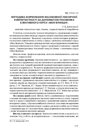 - Долинський, Євген Володимирович (2015) The method of forming foreign language lexical competence owing to elective course textbook «My France» Проблеми сучасного підручника, 1 (15). pp. 179-186. ISSN 2411-1309