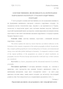 The article explains the main key factors that have an indirect influence on the formation of the semantic component of the modern geography textbook. In particular, they comprise global geopolitical events including those in Ukraine, environmental and energy crises and other global challenges to humanity. A comparative analysis is made of the topical problems of the preparation an content of school teaxtbooks on geography issued in Western Europe and around the world and ways of their solution are considered.