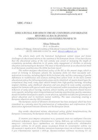 - Dzhurylo, A.P. (orcid.org/0000-0002-5129-6724) (2018) Educational reform in the EU countries and Ukraine: historical background, current issues and future prospect Studies in Comparative Education, 2. pp. 16-22. ISSN 2306-5532
