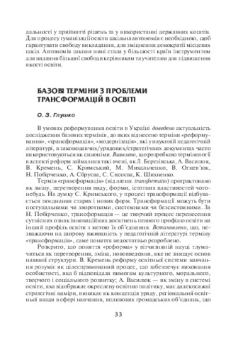 - Глушко, Оксана Зіновіївна (orcid.org/0000-0003-0101-9910) (2016) Basic terms for transformation in education In: Анотовані результати науково-дослідної роботи Інституту педагогіки за 2016 рік . Педагогічна думка, м. Київ, Україна, pp. 33-34. ISBN 978-966-644-398-5