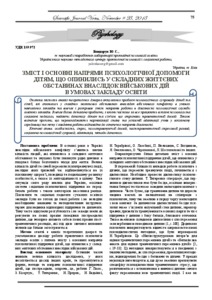 The article provides an analysis of the theoretical sources of actual problems of psychological support of children and families who find themselves in difficult living conditions as a result of a military conflict in the conditions of educational institutions and studies and discloses the content of the directions of work in the activities of the psychological service of educational institutions. Studying in more detail the problems with which most school psychologists and social educators work most often, providing help to children and families who have received traumatic experience. It also determines the reasons that hinder the normalization of the state and successful adaptation of pupils in the school environment, and the purpose and tasks of the work in accordance with the indicated directions of activity.