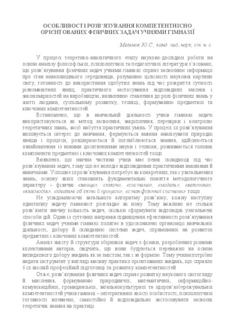 - Мельник, Ю.С. (orcid.org/0000-0002-1268-6199) (2018) Features of solving competent competence-oriented physical tasks by students of the gymnasium In: Анотовані результати науково-дослідної роботи Інституту педагогіки НАПН України за 2018 рік . Інститут педагогіки НАПН України, м. Київ, Україна, pp. 182-183. ISBN 978-966-644-464-9
