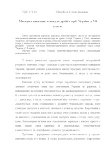 The article deals with the problem of cultural content and methods of ethno-cultural topics at History of Ukraine lessons. The study identified the theoretical and methodological foundations of ethno-cultural component in process of teaching practice in the context of individual-oriented and competent approach to leaning;disclosed educational potential of cultural content of school year history of Ukraine in 7-8 grates.