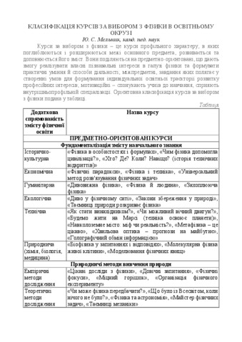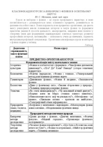 The theses provide an approximate classification of the elective course in physics. They are divided into subject-oriented, which enable them to realize their own cognitive interests in the field of physics and to develop practical skills and methods of action; interdisciplinary, whose task is to create conditions for the formation of an individual educational trajectory for the development of professional interests; motivational - encourage students to study, contribute to intrapersonal specialization.