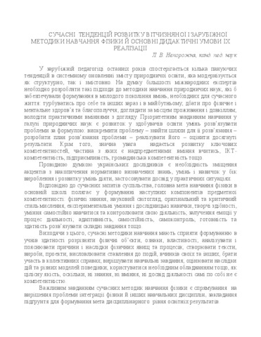 - Непорожня, Лідія Вікторівна (orcid.org/0000-0002-6984-7918) (2018) Modern trends in the development of domestic and foreign methods of teaching physics and the main didactic conditions for their implementation In: Анотовані результати науково-дослідної роботи Інституту педагогіки НАПН України за 2018 рік . Педагогічна думка, м. Київ, Україна, pp. 180-181. ISBN 978-966-644-464-9