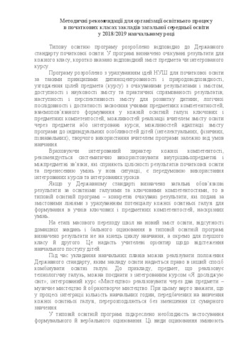 - Савченко, О.О., Бібік, Н.М., Онопрієнко, Оксана Володимирівна, Мартиненко, Валентина Олександрівна, Пономарьова, К. І., Прищепа, О.Ю., Листопад, Наталія Петрівна, Вашуленко, Оксана Вікторівна and Андрусенко, Ірина Володимирівна (2018) Methodological recommendations for the organization of educational process in elementary schools of institutions of general secondary education in the 2018/2019 academic year [Teaching Resource]