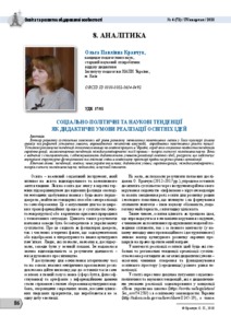 - Кравчук, Ольга Павлівна (orcid.org/0000-0002-0634-8492) (2018) Socio-political and Scientific Trends as Didactic Conditions for the Implementation of Educational Ideas Освіта та розвиток обдарованої особистості, 4 (71). pp. 86-95. ISSN 2309‑3935