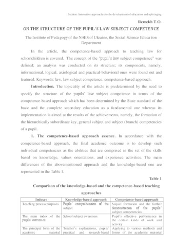 | Keywords: | law, law subject competence, competence-based approach |