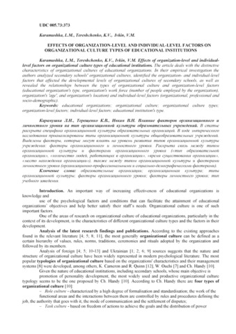 - Ivkin, V. M, Karamushka, L.M. and Tereshchenko, K. V. (2015) Effects of organization-level and individuallevel factors on organizational culture types of educational institutions Організаційна психологія. Економічна психологія (3). pp. 16-20. ISSN 2411-3190