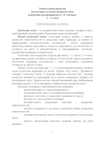Типову освітню програму розроблено відповідно до Державного стандарту початкової освіти (2017 р.) з урахуванням ідей Нової української школи. У програмі визначено очікувані результати для кожного класу, коротко вказано відповідний зміст предмета чи інтегрованого курсу.