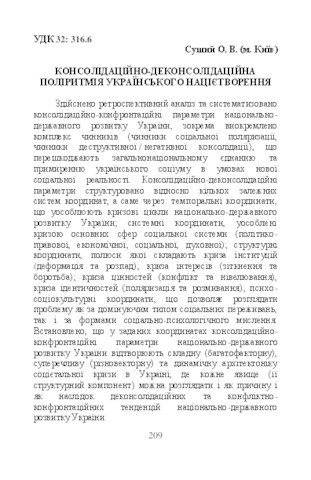 - Суший, О.В. (2018) The consolidative and deconsolidative polyrhythmia of Ukrainian Nation-Building Психологічні науки: проблеми і здобутки, 1 (11). pp. 209-237. ISSN 2522-4093