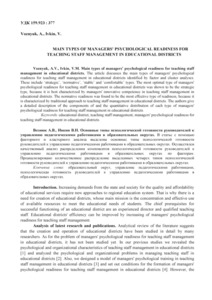 - Ivkin, V. M and Voznyuk, A. V. (2016) Main types of managers' psychological readiness for teaching staff management in educational districts Організаційна психологія. Економічна психологія, 1 (4). pp. 85-91. ISSN 2411-3190