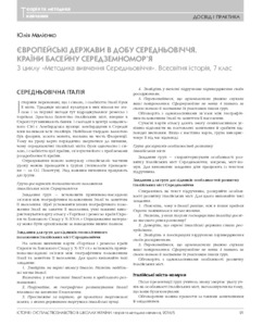 - Малієнко, Юлія Борисівна (2016) European states in the Middle Ages. The countries of the Mediterranean sea. From the cycle "Methodology of the study of the Middle Ages". World History, Grade 7 Історія і суспільствознавство в школах України: теорія та методика навчання, 5. pp. 21-26.