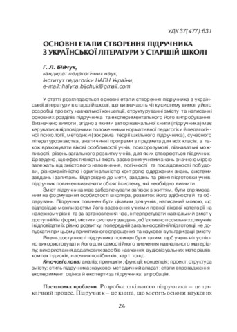 - Бійчук, Галина Леонідівна (2016) The main etapi stemmed pіdruchnika from Ukrainian literature in senior schools Проблеми сучасного підручника, 17. ISSN ISSN-2411-7447(Online)