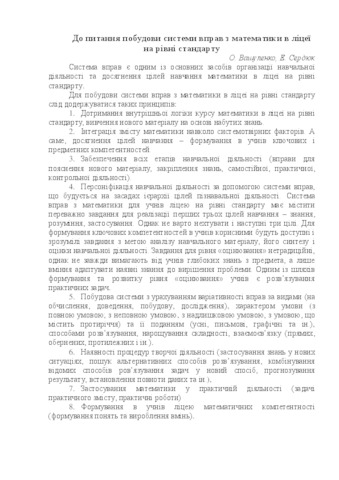 The exercise system is one of the main means of organizing learning activities and achieving the goals of teaching mathematics in a lyceum at the standard level.