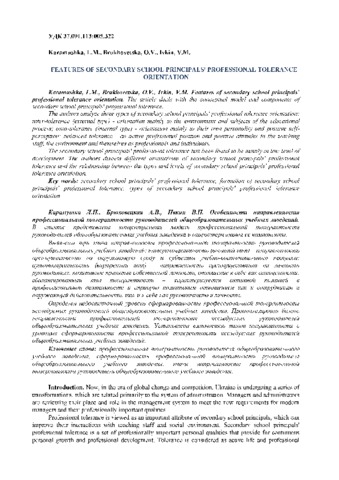 - Ivkin, V. M, Karamushka, L.M. and Brukhovetska, O.V. (2017) Features of secondary school principals' professional tolerance orientation Організаційна психологія. Економічна психологія, 2-3 (9-10). pp. 52-56. ISSN 2411–3190