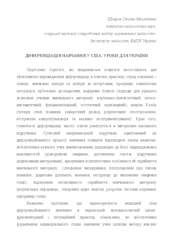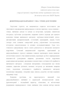 The theses outline the strategies that American educators use to effectively implement DI into educational practice. They also identify promising avenues to implement the American experience of differentiating learning into the Ukrainian educational system.