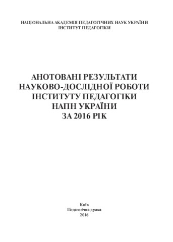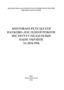 Інститут педагогіки, НАПН України (2016) Annotated results of research work of the Institute of Pedagogy of the National Academy of Sciences of Ukraine for 2016 . Педагогічна думка, м. Київ, Україна. ISBN 978-966-644-398-5
