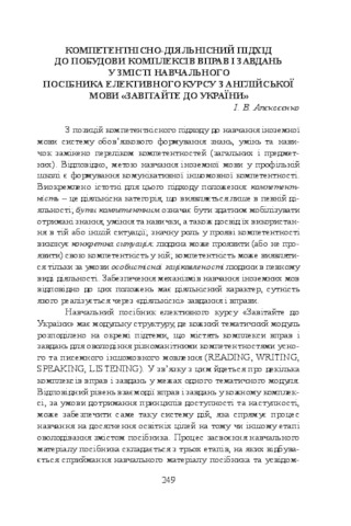 The article emphasizes competence-based potential of exercises and tasks in the content of the elective course textbook “Welcome to Ukraine".