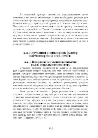 Section 2.2 deals with risk studies practice of life design and substantiation of the concept of management risks in a dangerous life situation. It is found that the psychological mechanism of risk reduction is the deployment of such personalization as trust. Reducing risk-taking life-giving is due to stabilization practices security, "flood" with danger, perfect design future and self-testing. Installed that optimization life-giving involves the use of constructive ways of mastering the uncertainty, namely the practice of experimentation. The model of optimization of stabilization resources was constructed personality.