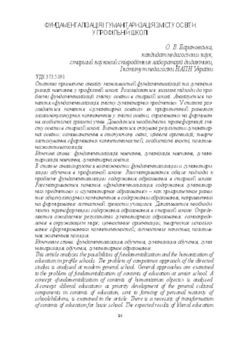 - Барановська, Олена Володимирівна (orcid.org/0000-0002-0788-8511) (2013) Fundamentalization and humanization of the content of education in the profile school Дидактика: теорія і практика. pp. 15-24.