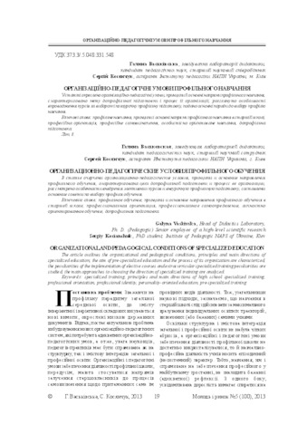 - Васьківська, Галина Олексіївна (orcid.org/0000-0002-8714-8512) and Косянчук, Сергій Володимирович (orcid.org/0000-0003-1334-6011) (2013) Organizational and pedagogical conditions of specialized education Молодь і ринок, 5 (100). pp. 19-24. ISSN 2308-4634