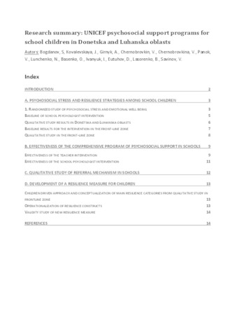 Research summary: UNICEF psychosocial support programs for school children in Donetska and Luhanska oblasts