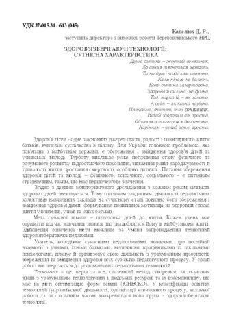 - Капелюх, Д.Р. (2018) Healthy technologies: Essential characteristics In: Матеріали міжнародної науково-практичної конференції “Інклюзивне навчання в Новій українській школі” (26-27 березня 2018 р., м. Теребовля) . Інтерсервіс, м. Теребовля, Україна, pp. 128-133. ISBN 978-617-696-722-4