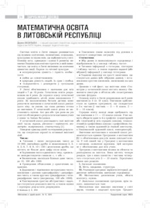- Васильєва, Д.В. (orcid.org/0000-0002-4083-681X) (2016) Mathematical education in the Lithuanian republic Математика в рідній школі, 12. pp. 26-31.