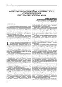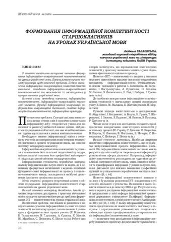 - Галаєвська, Л.В. (2018) Formation of informational competence of senior pupils at the lessons of the Ukrainian language Українська мова і література в школі, 3. pp. 26-30.