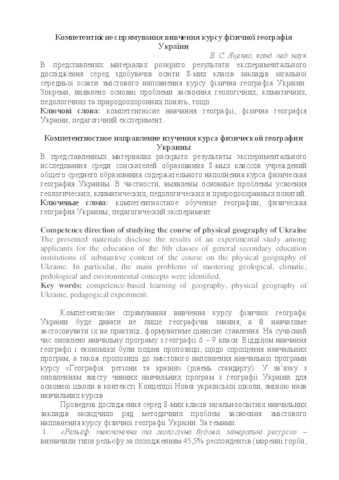 The presented materials disclose the results of an experimental study among applicants for the education of the 8th classes of general secondary education institutions of substantive content of the course on the physical geography of Ukraine. In particular, the main problems of mastering geological, climatic, pedological and environmental concepts were identified.
