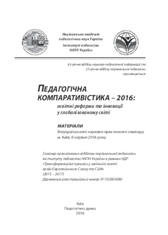 Інститут педагогіки, НАПН України (2016) Comparative Pedagogy - 2016: Educational Reforms and Innovations in a Globalized World . Педагогічна думка, м. Київ, Україна.