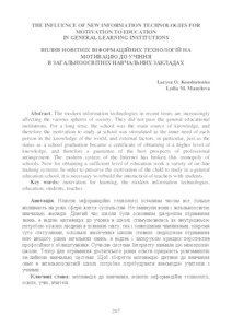 The modern information technologies in recent times are increasingly affecting the various spheres of society. They did not pass the general educational institutions. For a long time, the school was the main source of knowledge, and therefore the motivation to study at school was stimulated as the inner need of each person in the knowledge of the world, and external factors, in particular, just as the status as a school graduation became a certificate of obtaining it a higher level of knowledge, and therefore a guarantee of the best prospects of professional arrangement. The modern system of the Internet has broken this monopoly of schools. Now for obtaining a sufficient level of education work a variety of on-line training systems. In order to preserve the motivation of the child to study in a general education school, it is necessary to rebuild the interaction of teachers with students.