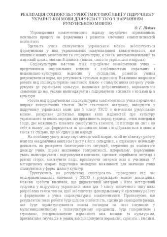 The publication reveals the peculiarities of the implementation of the sociocultural content line in the Ukrainian textbook for the 5th form of the schools with the study in the Romanian language. In particular, the didactic material and methodical apparatus of the textbook, which laid the potential for conducting purposeful work on the formation of students' socio-cultural competence, are analyzed in particular.