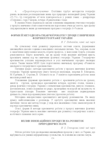 - Гончарова, Наталія Олександрівна (orcid.org/0000-0002-2120-4542) (2017) Influence of innovative processes on the development of natural sciences In: Анотовані результати науково-дослідної роботи Інституту педагогіки НАПН України за 2017 рік . Педагогічна думка, м. Київ, Україна, pp. 156-157. ISBN 978-966-644-398-5