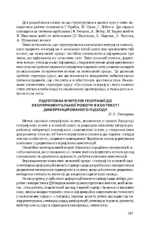 - Гончарова, Наталія Олександрівна (orcid.org/0000-0002-2120-4542) (2014) Preparation of geography teachers for experimental work in the context of a differentiated approach In: Анотовані результати науково-дослідної роботи Інституту педагогіки НАПН України за 2014 рік . Педагогічна думка, м. Київ, Україна, pp. 267-268. ISBN 978-966-644-398-5
