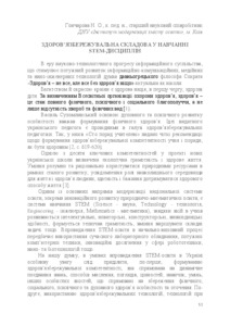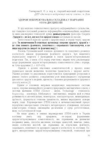 In the context of the introduction of STEM-education in Ukraine, special attention should be paid to the formation of health-saving competence, which is aimed at the dynamic combination of knowledge, ways of thinking, views, values, skills, abilities, other personal qualities that are aimed at preserving the physical , social, mental and spiritual health of the individual and the environment.