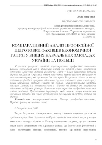 | Keywords: | comparative analysis, Poland, professional training, Ukraine, specialists of the economic branch |