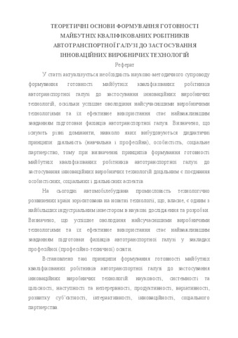 | Keywords: | Skilled worker, automotive industry, readiness, innovative manufacturing technologies, institution of professional (vocational) education. |