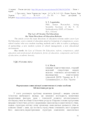 - Мося, І.А. (2018) Formation of Pupils’ Self-educational Competence by Means of Library Resources Науково-педагогічні студії (1). pp. 91-98.